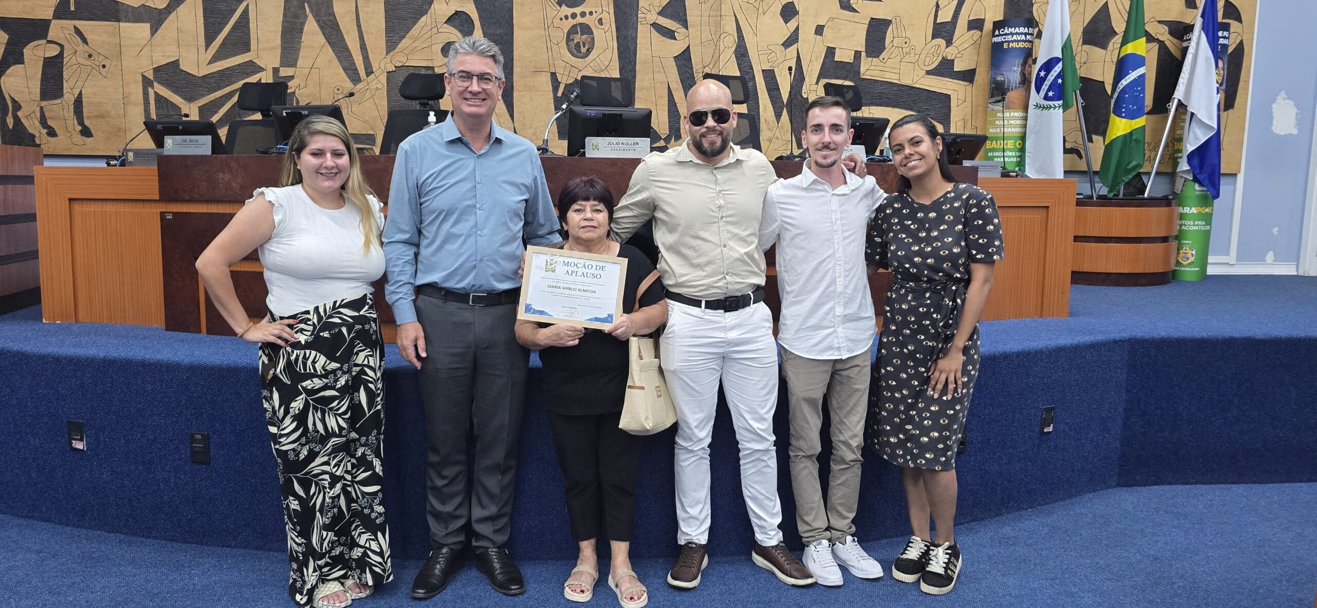 A ex – colaboradora da Associação Pontagrossense de Esportes para Deficientes Físicos (APEDEF), Maria Shirlei Almeida, recebeu nesta quarta – feira (22) na Câmara Municipal, uma homenagem à Moção de Aplauso, em reconhecimento do trabalho realizado na instituição em mais de 10 anos de atuação. A homenagem foi proposta pelo presidente da Casa, Julio Kuller (PL).