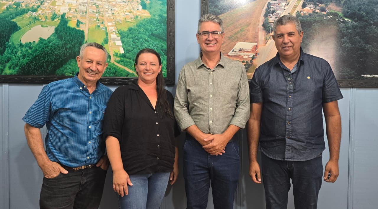 O presidente da Câmara Municipal de Ponta Grossa, Julio Küller, e o secretário de Agricultura, Pecuária e Abastecimento, Izaltino Cordeiro dos Santos, reuniram-se com a presidente da Câmara de Ipiranga, Meiriane Mendes Lepka Correia, e o secretário municipal de Agropecuária, Faustino Pereira Filho.