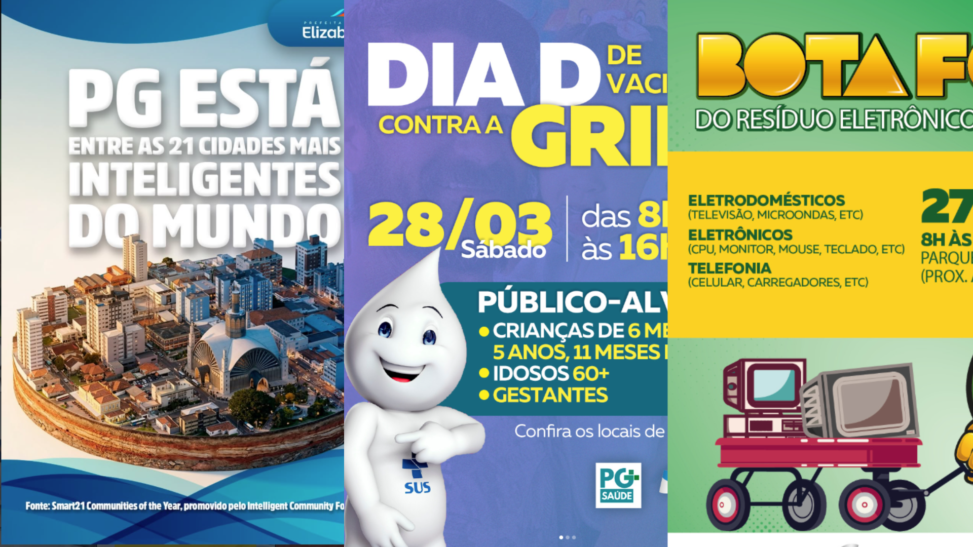 Também neste sábado (28) à prefeitura organiza o Dia D de Vacinação contra a Gripe, das 08h30 às 16h. Os locais de distribuição da vacina, estarão espalhados em diversos pontos da cidade,e são destinados à crianças de 6 meses à 5 anos; gestantes e idosos com 60 anos ou mais. Para receber a vacina deve levar a carteirinha de vacinação e documento com foto.