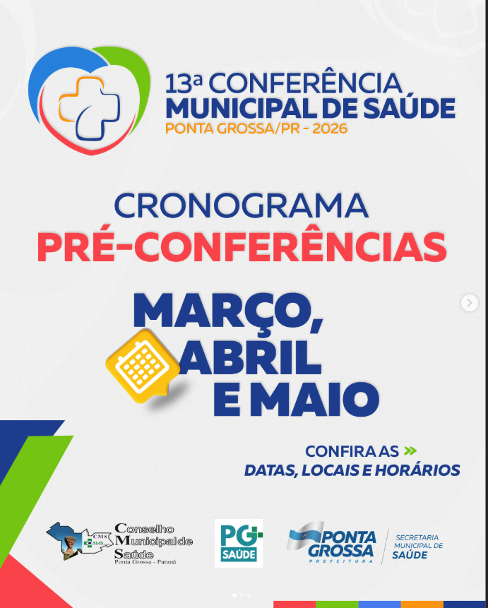 A Prefeitura de Ponta Grossa, através do Conselho Municipal de Saúde, divulgou hoje o calendário das pré- conferências da 13º Conferência Municipal de Saúde que será realizada entre os meses de março e maio.