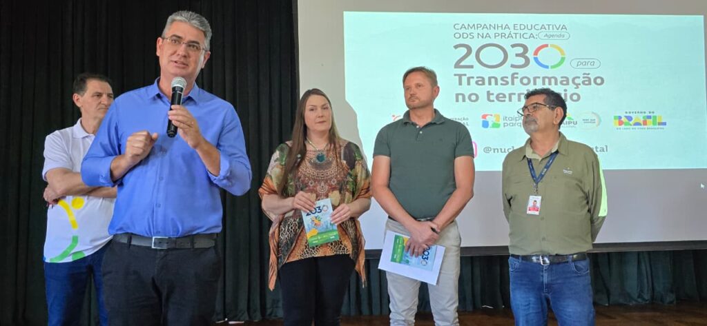 O presidente da Câmara Municipal, vereador Julio Kuller (MDB), esteve presente nesta terça – feira (14) no seminário ‘ODS na prática: Agenda 2030 para a transformação do território’, organizado pela Itaipu Binacional e Itaipu Parquetec, que ocorreu no município de Castro. Julio falou sobre a importância do evento e destacou o papel da Câmara Municipal de Ponta Grossa, na ajuda para alcançar os objetivos “Trazer a Agenda 2030 para a nossa realidade, é o passo fundamental para que a mudança realmente aconteça. Falar em ODS é falar em reduzir desigualdades, fortalecer nossa comunidade e garantir mais qualidade de vida para as pessoas, que é o objetivo final do nosso trabalho”. O seminário é organizado pelo Itaipu, em parceria com o Governo Federal, o ex-verador de Ponta grossa Geverson Tramontin e Núcleos de cooperação socioambiental. O seminário integra as ações do Convênio de Governança Participativa para a Sustentabilidade, alinhado às diretrizes do país para o enfrentamento da crise climática e fortalecimento da educação socioambiental.