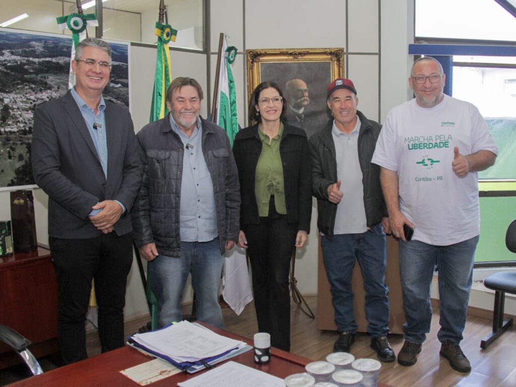 Além de Teixeira Soares, a programação inclui visitas a Rebouças, Rio Azul e Mallet, encerrando com uma grande reunião em Irati Nesta quinta-feira (18), o município de Teixeira Soares recebeu a visita da jornalista e pré-candidata ao Senado Cristina Graeml, que esteve acompanhada do presidente da ASCAMSUL (Associação de Câmaras Municipais do Sul do Paraná), vereador Julio Kuller. A comitiva foi recebida pelo prefeito Muller, pelo vice-prefeito Ademilson Pires e pelo auxiliar técnico José Santos da Rosa, em uma reunião que destacou a importância da integração regional e da busca conjunta por recursos e políticas públicas voltadas ao desenvolvimento local. Essa agenda faz parte de uma série de encontros promovidos pela ASCAMSUL, sob a liderança de Julio Kuller, que percorre os municípios da região. Além de Teixeira Soares, a programação inclui visitas a Rebouças, Rio Azul e Mallet, encerrando com uma grande reunião em Irati, que reunirá lideranças de toda a região sul do Paraná. Durante a passagem por Teixeira Soares, Cristina Graeml ressaltou a importância de ouvir as demandas municipais: “O Senado precisa estar próximo das cidades, ouvindo os prefeitos, lideranças e a população. É assim que construiremos soluções reais para o Paraná”, destacou. O prefeito Muller agradeceu a presença das lideranças e reforçou a relevância da união entre municípios: “Esse diálogo mostra que, quando trabalhamos juntos, conseguimos avançar mais rápido nas conquistas para a nossa população.” A reunião em Teixeira Soares reforça o compromisso da ASCAMSUL em promover a integração regional e ampliar a representatividade dos municípios do sul do Paraná nas instâncias estadual e federal.