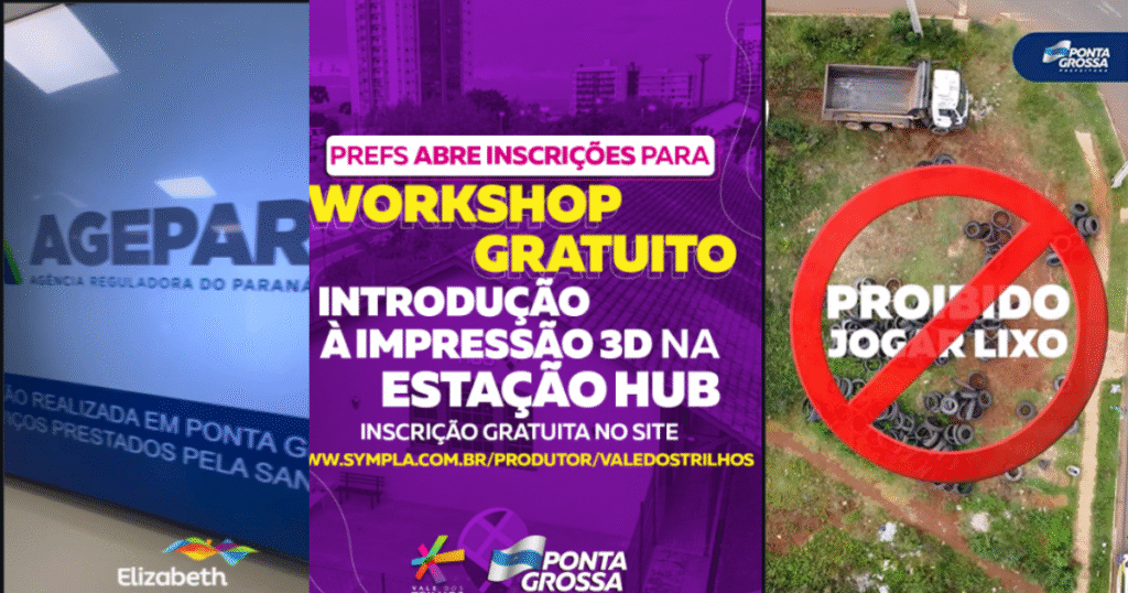 A prefeitura de Ponta Grossa abriu as inscrições abertas para o curso de Workshop de Introdução à Impressão 3D, ele é gratuito e aberto à toda população. As aulas aconteceram nos dias 10 e 12 de março na Estação Hub, das 13h30 às 16:30 As vagas são limitadas e a inscrição deve ser realizada no perfil do Vale dos Trilhos no Sympla. Entre as atividades ofertadas pelo curso estão capacitação prática sobre modelagem, materiais, operação de máquinas e aplicações no mercado.. Na prevenção de doenças e eliminação do mosquito Aedes Aegypti,a prefeitura está fiscalizando possíveis focos do mosquito e multando os responsáveis. Caso souber de um foco do mosquito pode realizar uma denúncia anônima nos canais da prefeitura. A prefeita Elizabeth Schmidt se reuniu nesta semana na Agência Reguladora do Paraná (AGEPAR), com o secretário de Projetos Estratégicos, Edgar Hampf, juntamente com o Procurador – Geral do Município, Gustavo Mata e a secretário do Meio Ambiente, Carla Kritski, para discutir ações a serem tomadas para solucionar a situação crítica da água no município e buscar novas alternativas.